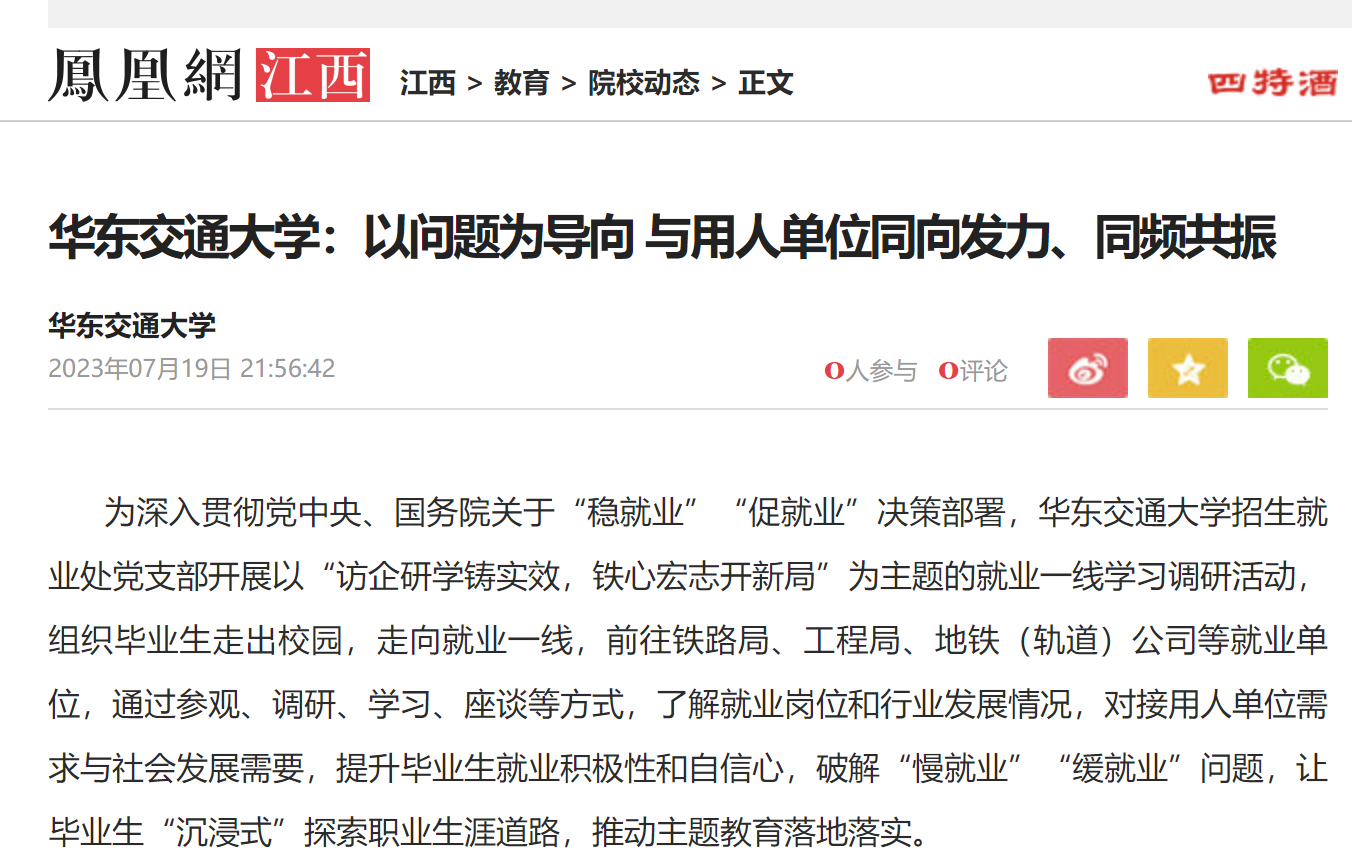 从“调研”到“成长”,校企共育。“在校期间应该考取哪些证书更有利于求职呢”“直接就业好还是继续读研好”“我们的专业知识符合工作岗位要求吗”……在中铁建工集团江西分公司,经管学院“‘经’兢业业学习调研团队”的同学们抛出一个又一个的问题,2011届会计专业校友、公司财务部部长李丹热情解答并结合文经类专业特色与经管学院师生分享学习工作经验,并就业市场的大数据做宏观分析,以个人感受体会做微观解答,结合多维度出发,为同学们答疑解惑,扫清就业方面的认知“障碍”。在中铁一局青山湖项目部,厦门公司党委委员、副总经理马欣介绍了企业基本情况;中铁一局集团公司人才管理科负责人宋颖钊介绍了集团人才需求和毕业生发展的有关情况,并就企业人才培养、薪资待遇、校企合作、毕业生发展前景等方面进行了深入交流。