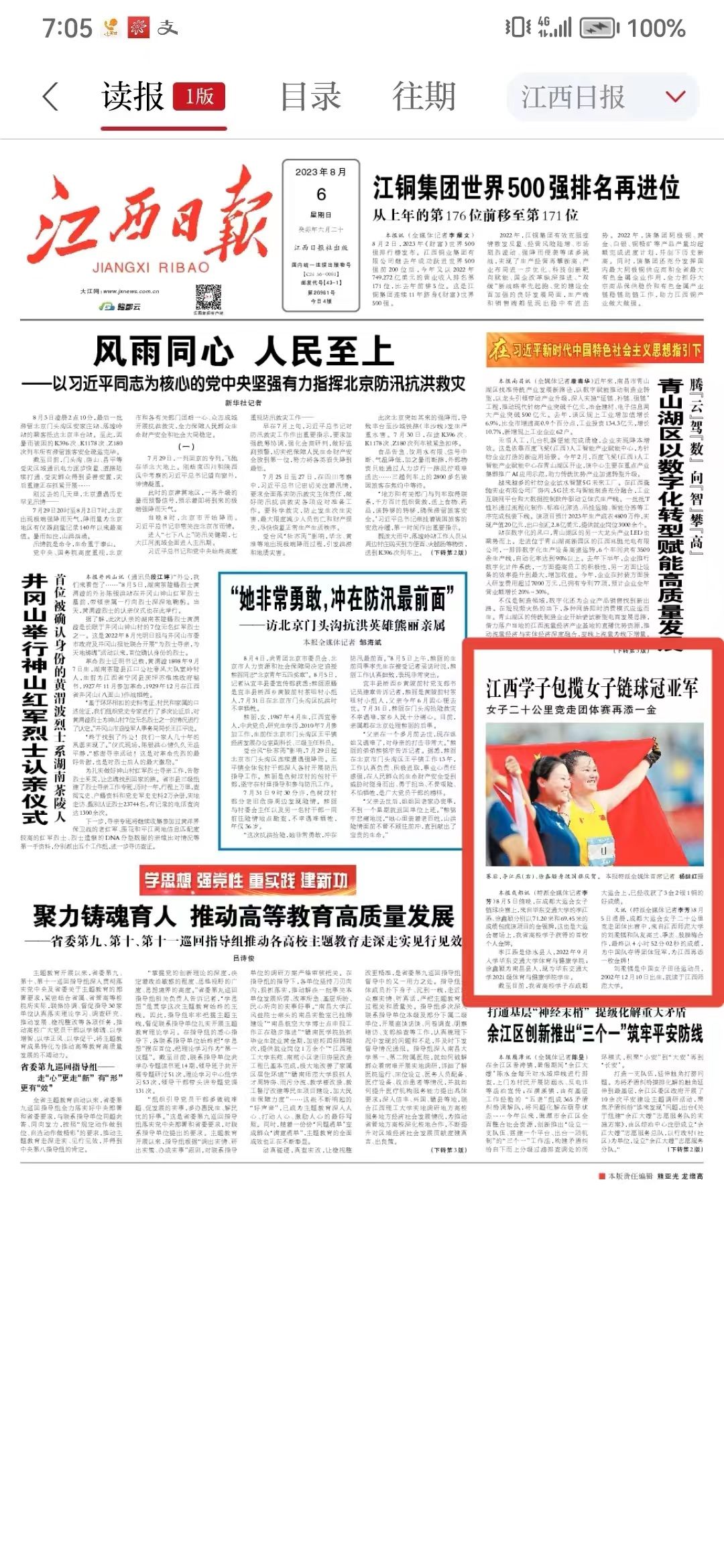 8月5日清晨,成都大运会女子二十公里竞走团体比赛中,来自江西师范大学的刘柔镁和队友高兰、季杰、殷腊梅合作,最终以4小时52分02秒的成绩,为中国队夺得团体冠军,为江西再添一枚金牌!