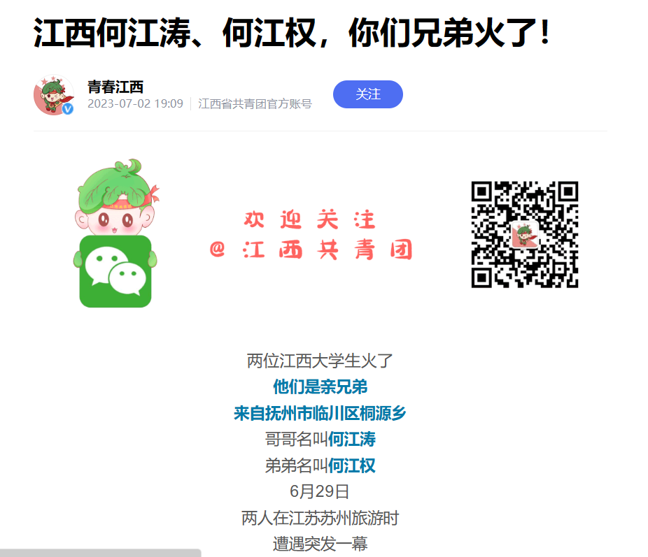 两位江西大学生火了他们是亲兄弟来自抚州市临川区桐源乡哥哥名叫何江涛弟弟名叫何江权6月29日