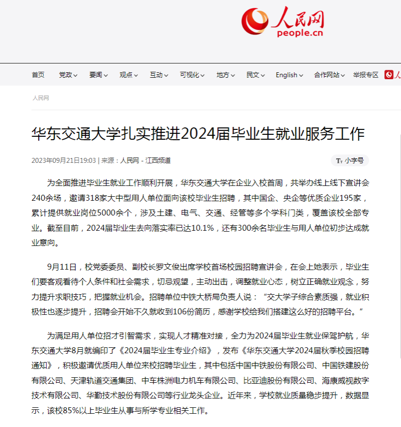此外,华东交大将搭建更多校地企交流平台,精准开展供需对接,扎实推进就业服务工作,助力广大毕业生实现早就业、就好业。