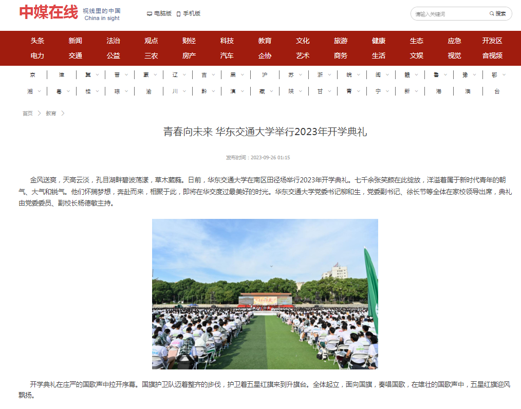 金风送爽,天高云淡,孔目湖畔碧波荡漾,草木葳蕤。日前,beat365正版唯一官网必一在南区田径场举行2023年开学典礼。七千余张笑颜在此绽放,洋溢着属于新时代青年的朝气、大气和锐气。他们怀揣梦想,奔赴而来,相聚于此,即将在华交度过最美好的时光。beat365正版唯一官网必一党委书记柳和生,党委副书记、徐长节等全体在家校领导出席,典礼由党委委员、副校长杨德敏主持。