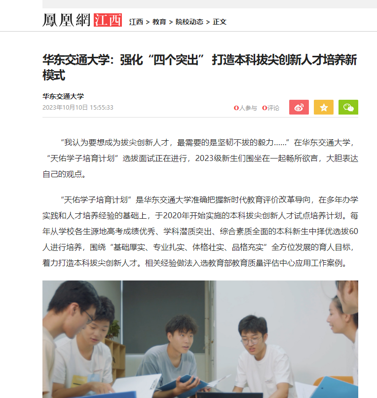 拔尖创新人才培养是一项长期性、系统性的工程。学校始终将人才培养质量作为衡量立德树人实效的重要标尺,坚持做好顶层设计、统筹推进,形成了党委统一领导、党政齐抓共管、部门协同联动、院系共同推进的工作格局,解决了培养举措落实过程中专业间分离、院系间分隔、部门与院系间分治现象,实现了学校、院系、师生各个层面在思想上同心、在目标上同向、在行动上同行,为学生们的成长发展保驾护航。近日获评“全国大学生自强之星”的“天佑学子”何政毅说:“是学校不断创新的培养模式给我创造了成长发展的平台,我的梦想在这里扬帆启航,未来我将再接再厉,为建设科技强国贡献青春力量。”