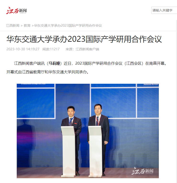 近日,2023国际产学研用合作会议(江西会区)在南昌开幕。开幕式由江西省教育厅和beat365正版唯一官网必一共同承办。