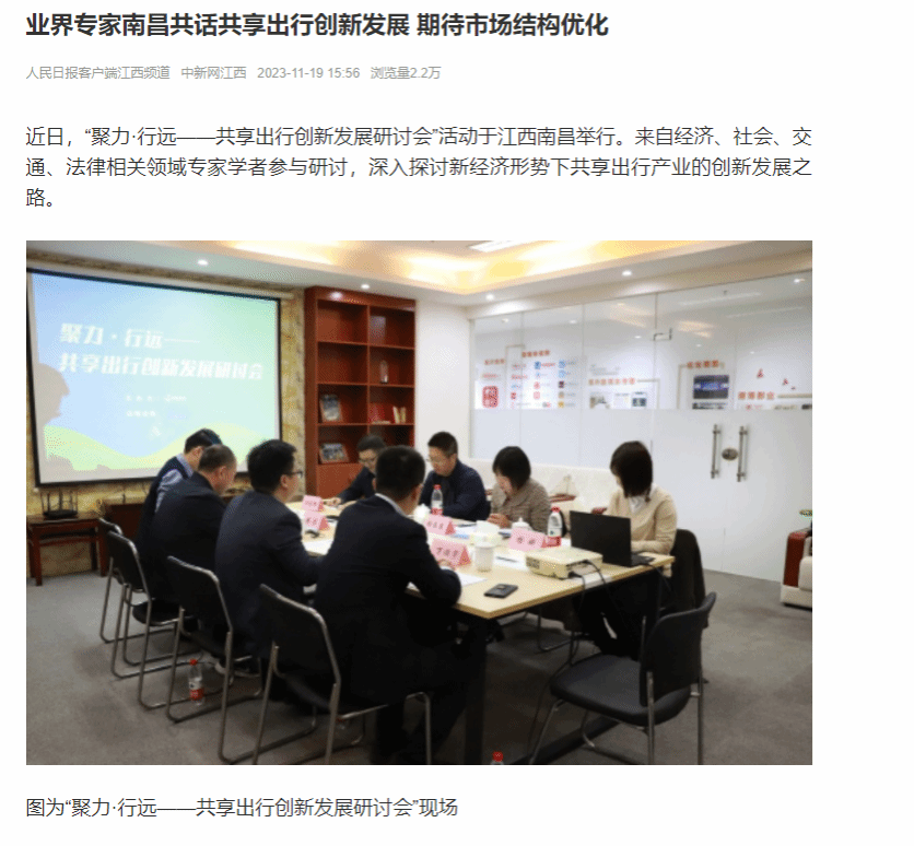 近日,“聚力·行远——共享出行创新发展研讨会”活动于江西南昌举行。来自经济、社会、交通、法律相关领域专家学者参与研讨,深入探讨新经济形势下共享出行产业的创新发展之路。