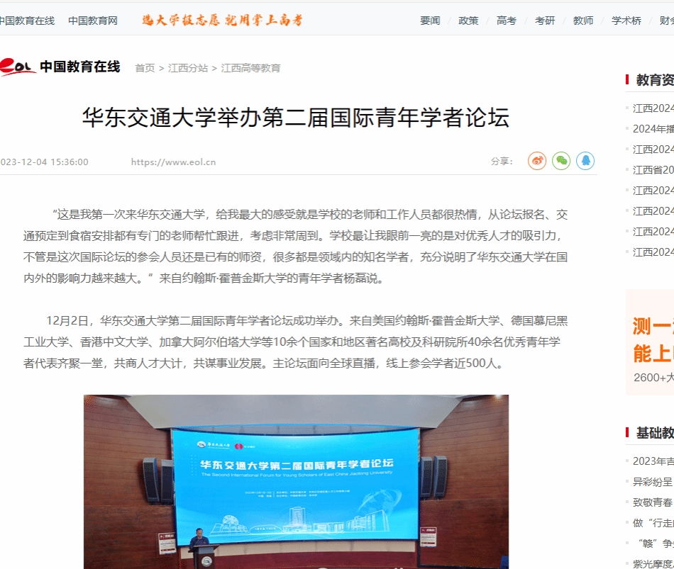 网址链接:beat365正版唯一官网必一举办第二届国际青年学者论坛 —江西站—中国教育在线 (eol.cn)