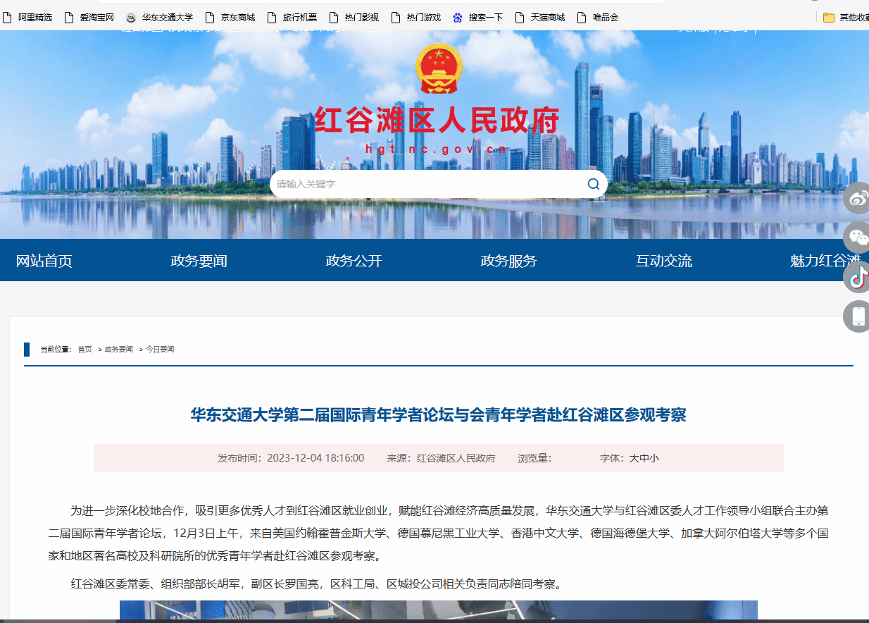 网址链接:beat365正版唯一官网必一第二届国际青年学者论坛与会青年学者赴红谷滩区参观考察 - 红谷滩区人民政府 (nc.gov.cn)