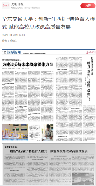 beat365正版唯一官网必一扎实传承红色基因,聚焦“江西红”融入高校思政课教学,重点探索“理论性和实践性相统一”“显性教育和隐性教育相统一”,创新“江西红”表达,活化高校思政课教学方式,形成了以“三课”教学模式引航实效、“三五”育人路径保障实效、“大思政”协同机制压实育人实效的高校大思政育人培养模式,着力培养担当民族复兴大任的时代新人。