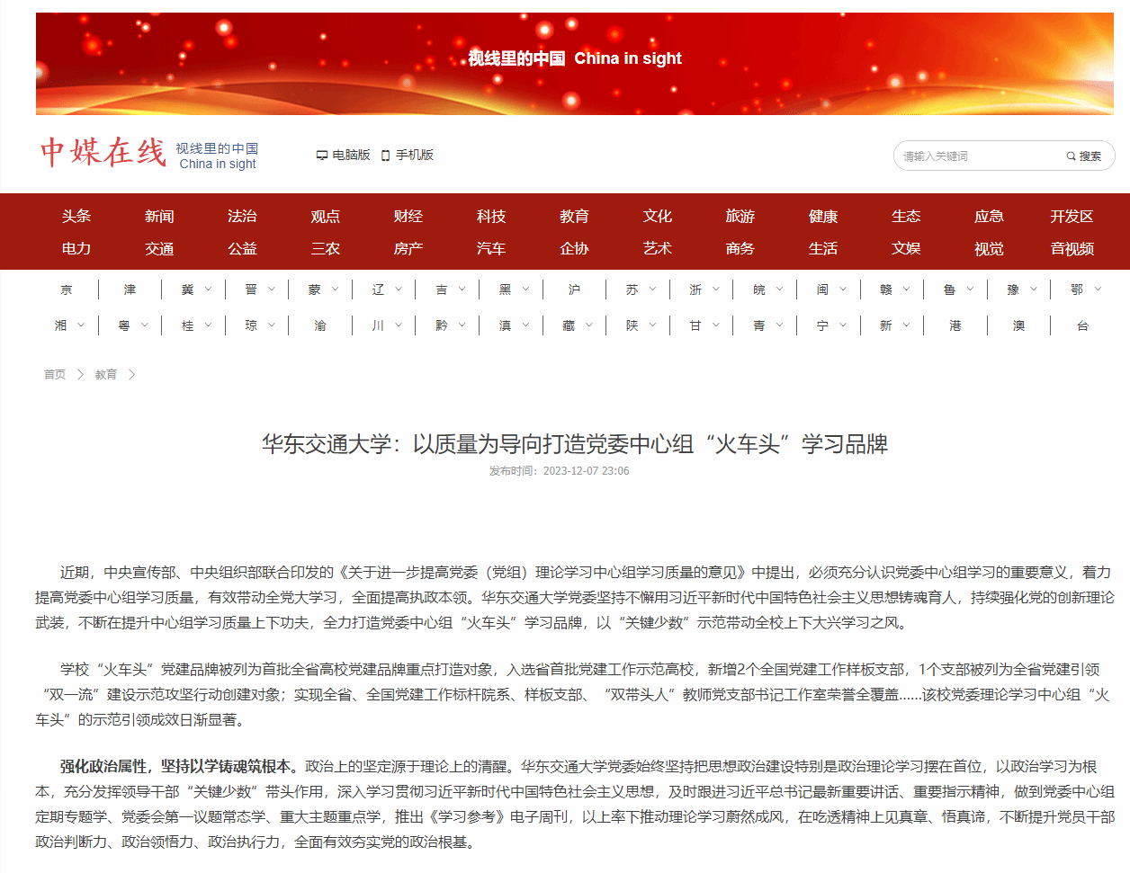 学校“火车头”党建品牌被列为首批全省高校党建品牌重点打造对象,入选省首批党建工作示范高校,新增2个全国党建工作样板支部,1个支部被列为全省党建引领“双一流”建设示范攻坚行动创建对象;实现全省、全国党建工作标杆院系、样板支部、“双带头人”教师党支部书记工作室荣誉全覆盖……该校党委理论学习中心组“火车头”的示范引领成效日渐显著。