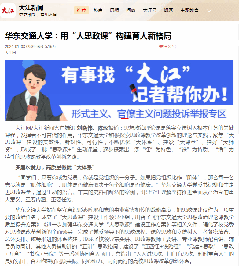 【大江网】beat365正版唯一官网必一:用“大思政课”构建育人新格局