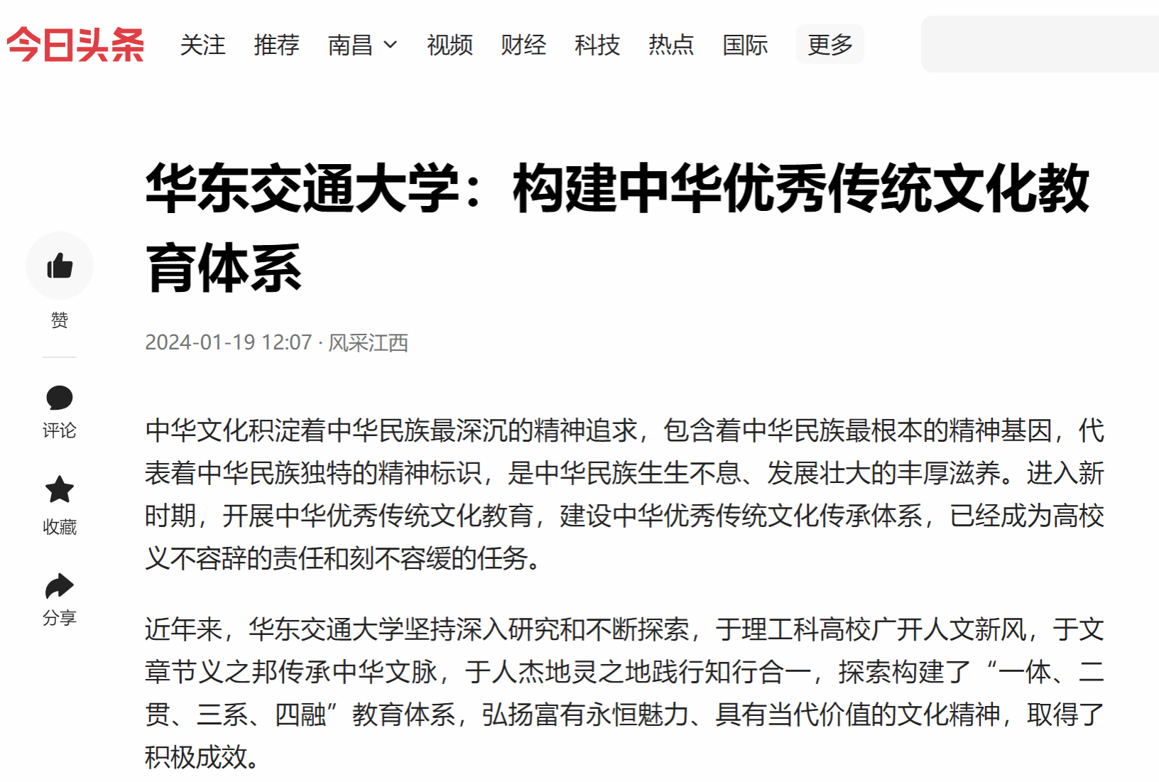 此外,学校还通过引育并举的方式建成了一支30余人的高水平专兼职中华优秀传统文化师资队伍,开发了一批交叉融合专题,例如,《从百年党史谈“两个维护”》在学习强国平台展播,“儒家文化与学生心理健康”被列入江西省10万名中小学教师心理健康教育辅导能力培训必修课程,《部编教材下的中学经典诵读实施策略》登上“千课万人”“现代与经典”等全国中小学教师培训高级平台。