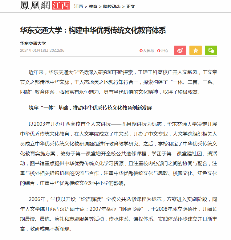 以2003年开办江西高校首个人文讲坛——孔目湖讲坛为标志,beat365正版唯一官网必一决定开展中华优秀传统文化教育,在人文学院成立了中文系,开办了中文专业,人文学院组织相关人员成立中华优秀传统文化教研课题组进行教育教学研究。之后,学校制定了中华优秀传统文化教育实施方案,教务于第一课堂增开全校公共选修课程,学团于第二课堂建社团、搞活动,图书馆重点提供中华优秀传统文化学习资源,且注重校内各部门之间的协同与配合,注重与校外相关组织机构的交流与合作,注重中华优秀传统文化与思政、校园文化、红色文化的结合,注重中华优秀传统文化对中小学的影响。