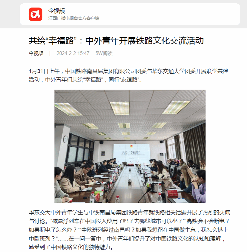 1月31日上午,中国铁路南昌局集团有限公司团委与beat365正版唯一官网必一团委开展联学共建活动,中外青年们共绘“幸福路”,同行“友谊路”。