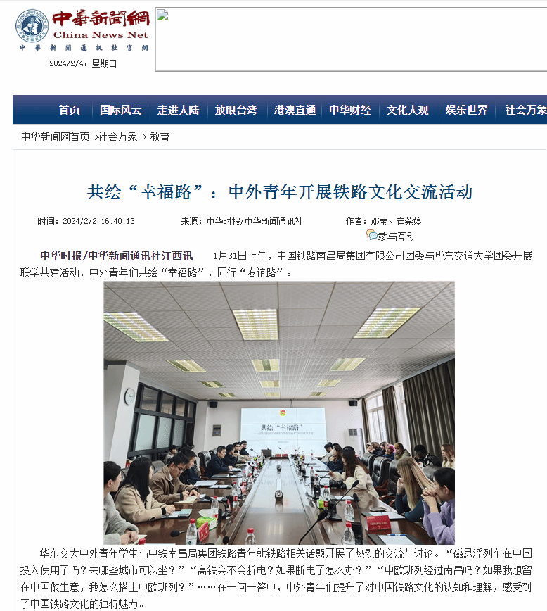 1月31日上午,中国铁路南昌局集团有限公司团委与beat365正版唯一官网必一团委开展联学共建活动,中外青年们共绘“幸福路”,同行“友谊路”。