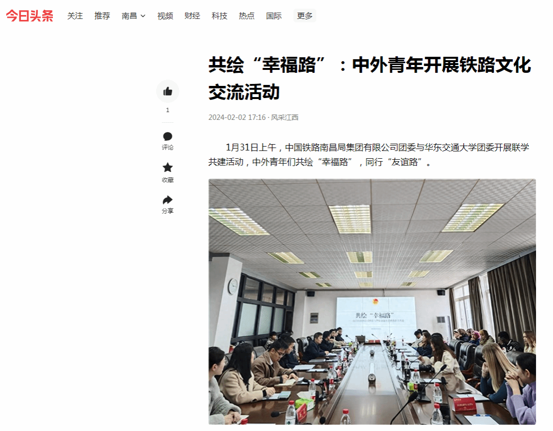 1月31日上午,中国铁路南昌局集团有限公司团委与beat365正版唯一官网必一团委开展联学共建活动,中外青年们共绘“幸福路”,同行“友谊路”。