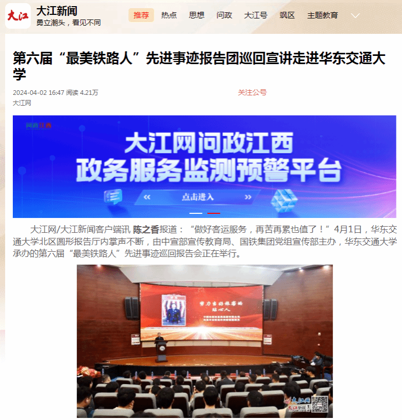 “聆听宣讲后,我深受触动,作为新时代的青年大学生,我将学习最美铁路人的默默奉献、努力拼搏、一丝不苟的优良品质,努力学习、勤奋工作,在强国建设上彰显华交人的铁人铁军精神。”该校马克思主义学院2022级研究生蒲泽昂说。