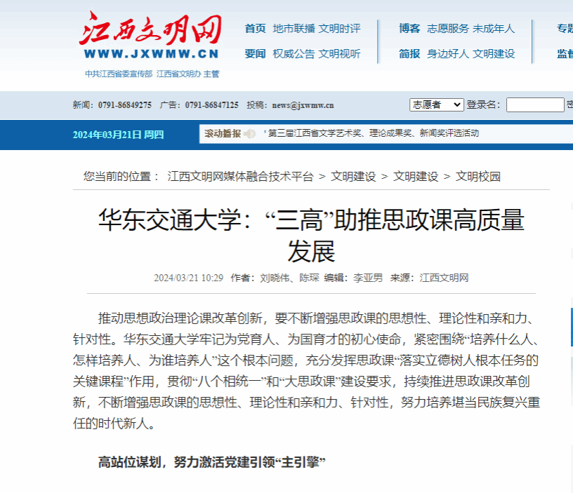 这一年,学校党委高标准高质量开展主题教育,相关经验做法入选中央主题教育官网11篇(数量位列全国地方高校第一);认真接受省委常规巡视,从严从实做好巡视“后半篇文章”;纵深推进“火车头”党建提升工程,建成指挥调度中心,成立“火车头”干部教育培训学院,实现全省首批新时代高校党建示范创建和质量创优工作“全满贯”,“火车头”党建品牌获得省委主要领导点名表扬;时隔20年再获团中央最高荣誉“全国五四红旗团委”。