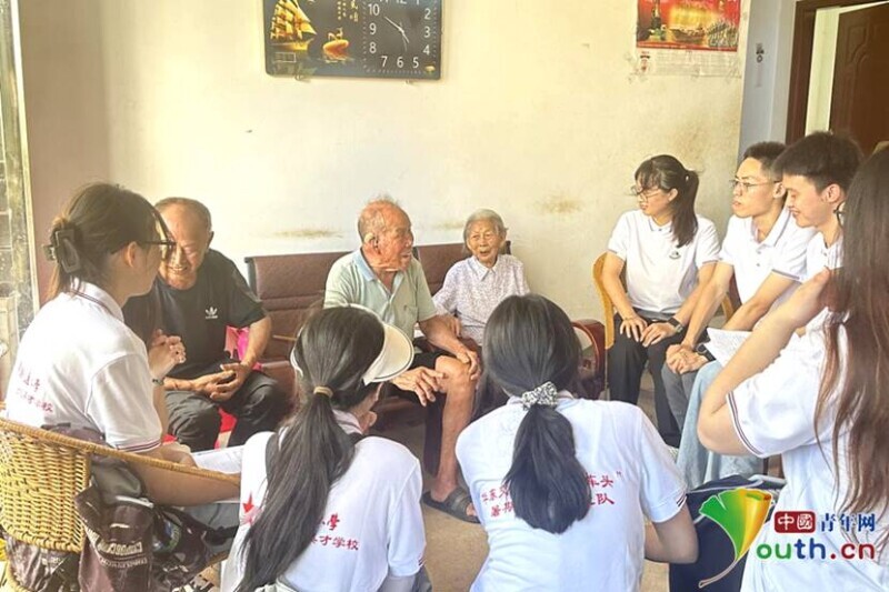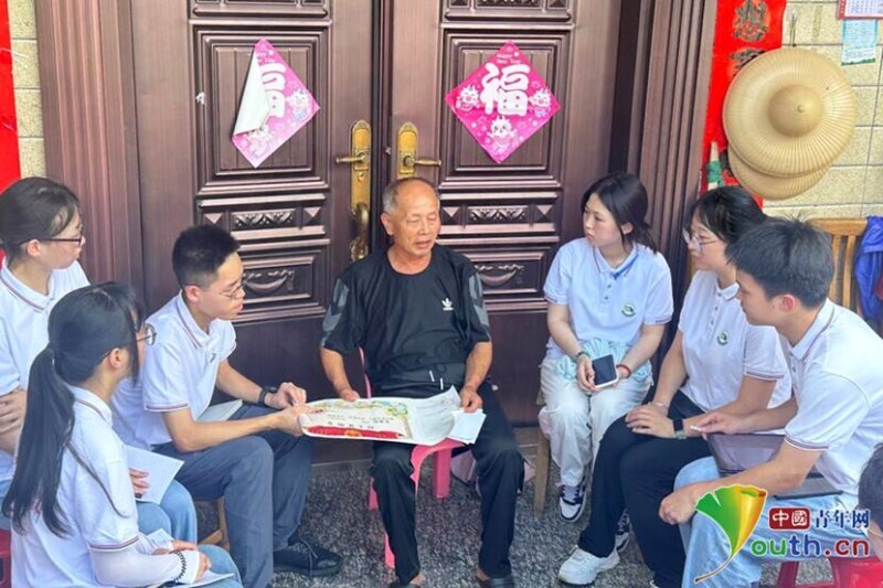 朱发金给实践队员讲述先辈革命故事。陈琛 摄