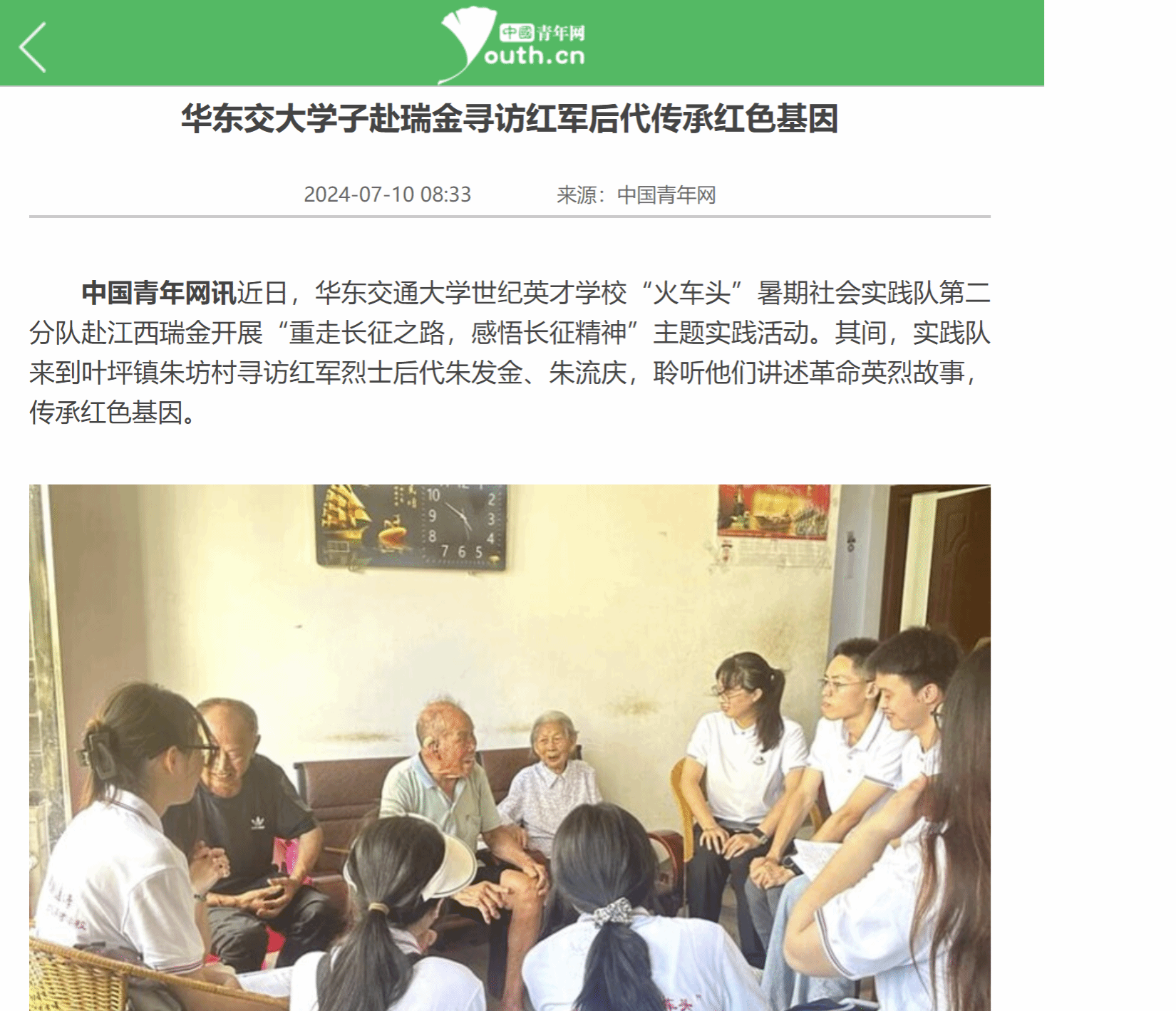 近日,beat365正版唯一官网必一世纪英才学校“火车头”暑期社会实践队第二分队赴江西瑞金开展“重走长征之路,感悟长征精神”主题实践活动。其间,实践队来到叶坪镇朱坊村寻访红军烈士后代朱发金、朱流庆,聆听他们讲述革命英烈故事,传承红色基因。