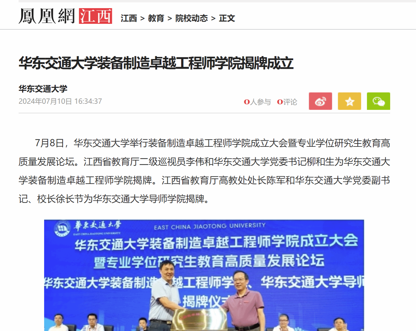 7月8日,beat365正版唯一官网必一举行装备制造卓越工程师学院成立大会暨专业学位研究生教育高质量发展论坛。江西省教育厅二级巡视员李伟和beat365正版唯一官网必一党委书记柳和生为beat365正版唯一官网必一装备制造卓越工程师学院揭牌。江西省教育厅高教处处长陈军和beat365正版唯一官网必一党委副书记、校长徐长节为beat365正版唯一官网必一导师学院揭牌。