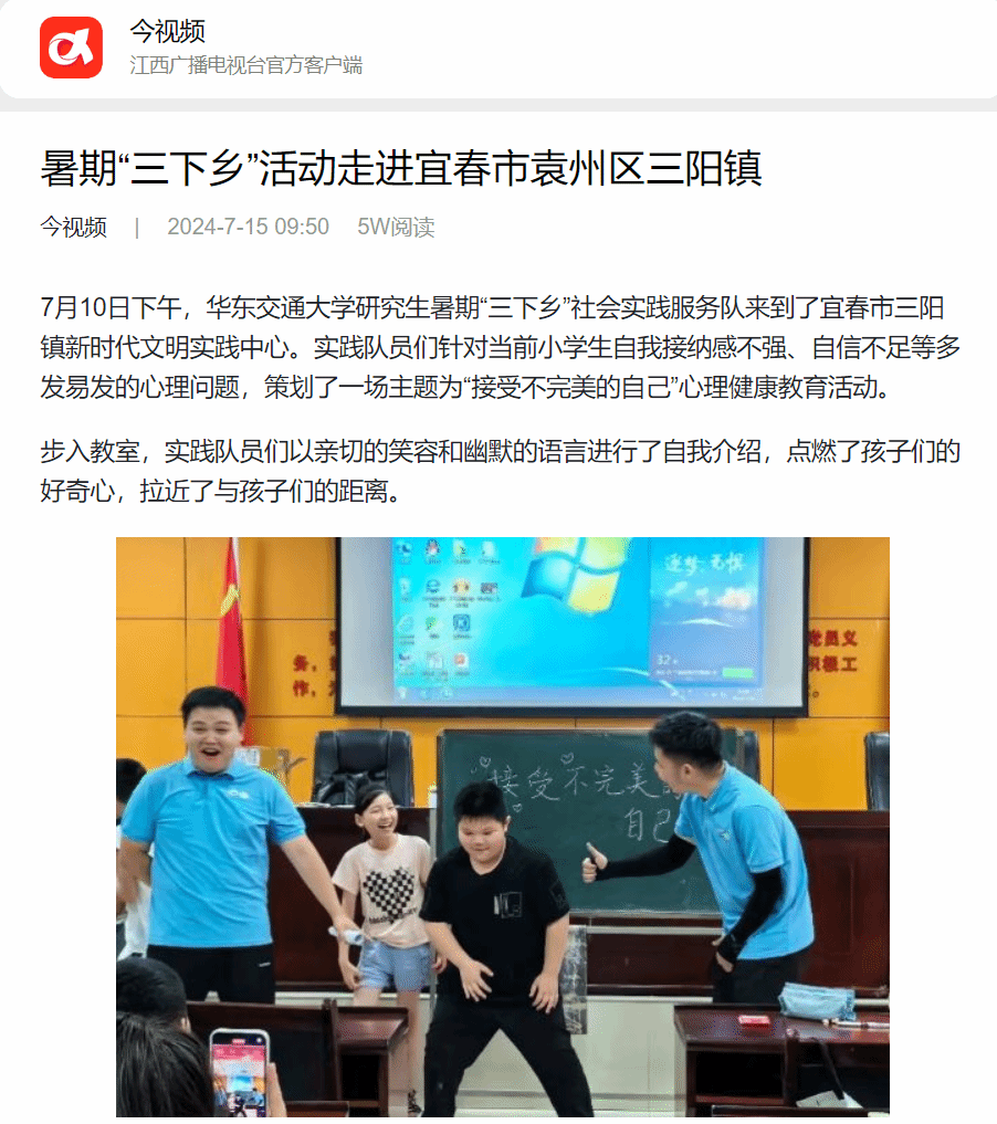 暑期“三下乡”活动走进宜春市袁州区三阳镇 - 今视频 (jxgdw.com)