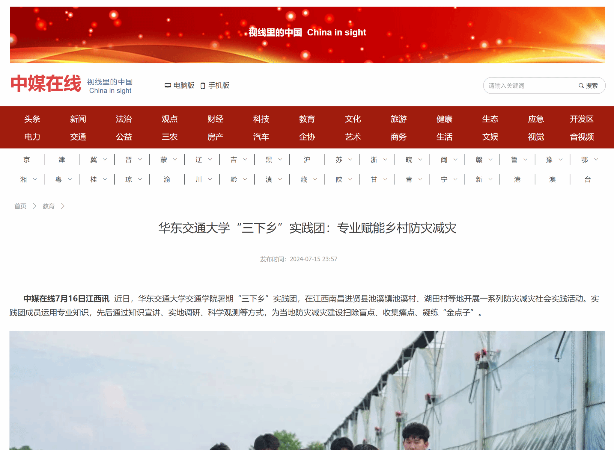近日,beat365正版唯一官网必一交通学院暑期“三下乡”实践团,在江西南昌进贤县池溪镇池溪村、湖田村等地开展一系列防灾减灾社会实践活动。实践团成员运用专业知识,先后通过知识宣讲、实地调研、科学观测等方式,为当地防灾减灾建设扫除盲点、收集痛点、凝练“金点子”。