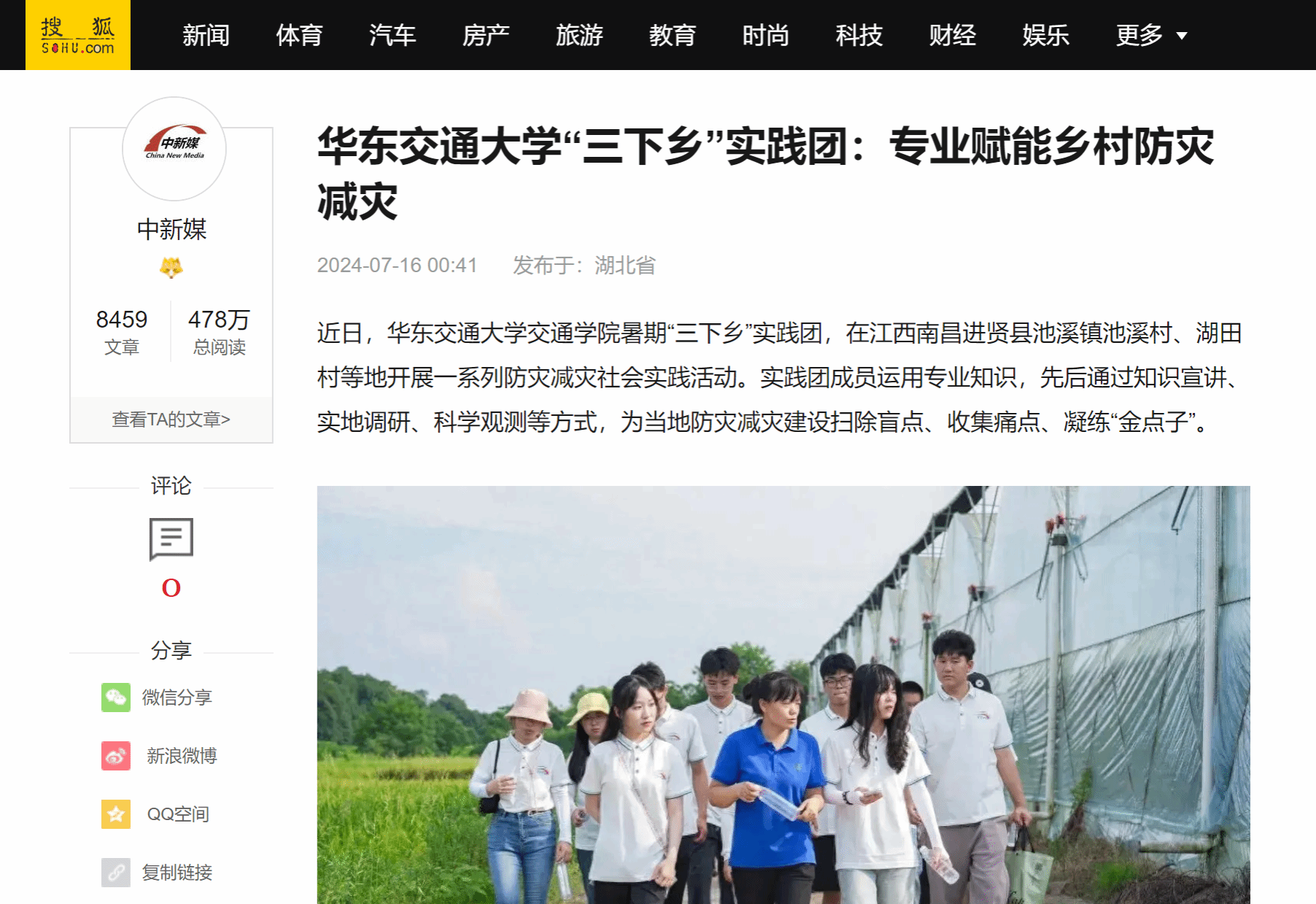近日,beat365正版唯一官网必一交通学院暑期“三下乡”实践团,在江西南昌进贤县池溪镇池溪村、湖田村等地开展一系列防灾减灾社会实践活动。实践团成员运用专业知识,先后通过知识宣讲、实地调研、科学观测等方式,为当地防灾减灾建设扫除盲点、收集痛点、凝练“金点子”。