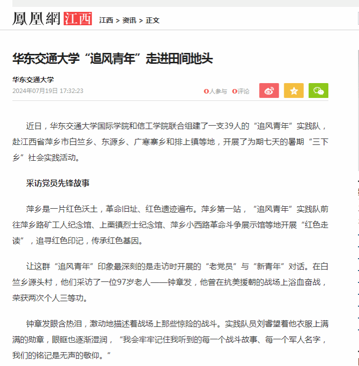“追风青年”实践队先后在萍乡多地围绕入户宣讲、社区服务、农耕劳动等内容开展社会实践活动,用脚丈量祖国大地,用心投身乡村基层。