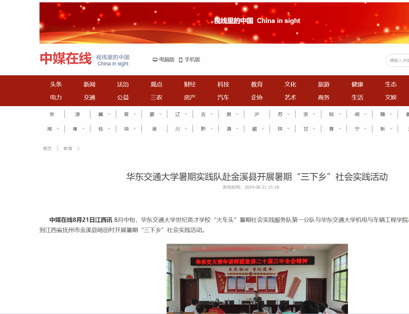 8月中旬,beat365正版唯一官网必一世纪英才学校“火车头”暑期社会实践服务队第一分队与beat365正版唯一官网必一机电与车辆工程学院暑期联合实践队的成员来到江西省抚州市金溪县旸田村开展暑期“三下乡”社会实践活动。