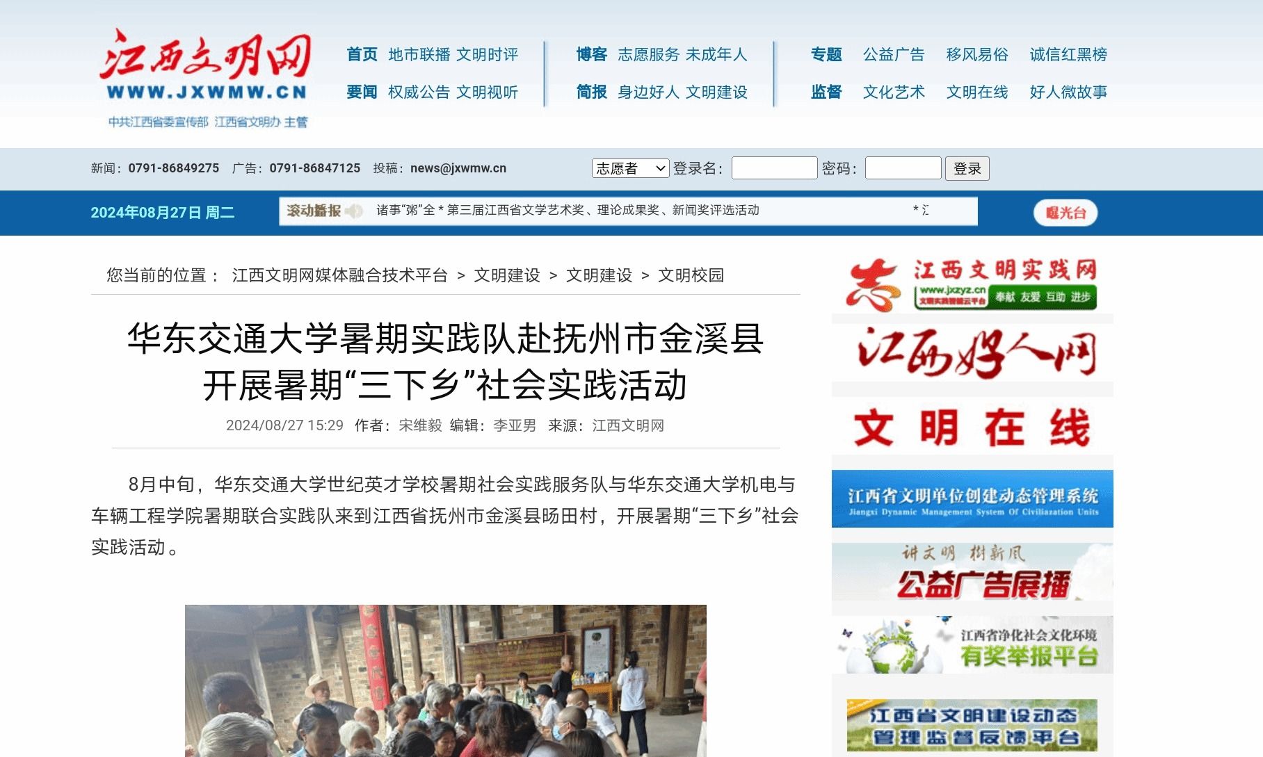 8月中旬,beat365正版唯一官网必一世纪英才学校暑期社会实践服务队与beat365正版唯一官网必一机电与车辆工程学院暑期联合实践队来到江西省抚州市金溪县旸田村,开展暑期“三下乡”社会实践活动。