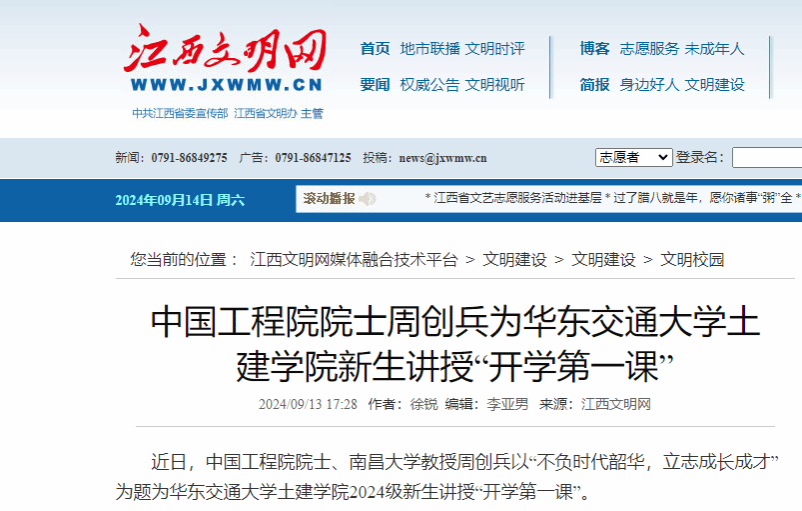 近日,中国工程院院士、南昌大学教授周创兵以“不负时代韶华,立志成长成才”为题为beat365正版唯一官网必一土建学院2024级新生讲授“开学第一课”。