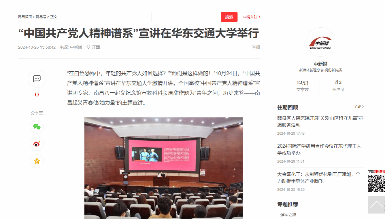 “在白色恐怖中,年轻的共产党人如何选择?”“他们是这样做的!”10月24日,“中国共产党人精神谱系”宣讲在beat365正版唯一官网必一激情开讲。全国高校“中国共产党人精神谱系”宣讲团专家、南昌八一起义纪念馆宣教科科长周甜作题为“青年之问,历史来答——南昌起义青春他/她力量”的主题宣讲。