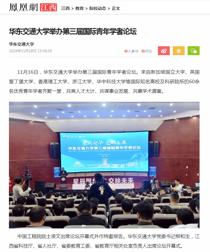 论坛旨在围绕服务交通强国战略和交通强省建设,聚焦交通特色办学定位,为海内外优秀青年学者搭建展现才华的舞台,吸引学者来赣建功立业,为交通强省建设提供智力与人才支撑。参会学者专业涵盖了土木工程、机械工程、交通运输工程、电气工程、控制科学与工程等20多个学科领域。
