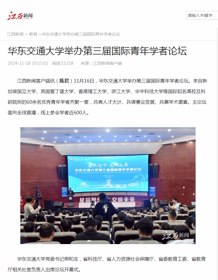 据悉,论坛旨在围绕服务交通强国战略和交通强省建设,聚焦交通特色办学定位,为海内外优秀青年学者搭建展现才华的舞台,吸引学者来赣建功立业,为交通强省建设提供智力与人才支撑。参会学者专业涵盖了土木工程、机械工程、交通运输工程、电气工程、控制科学与工程等20多个学科领域。