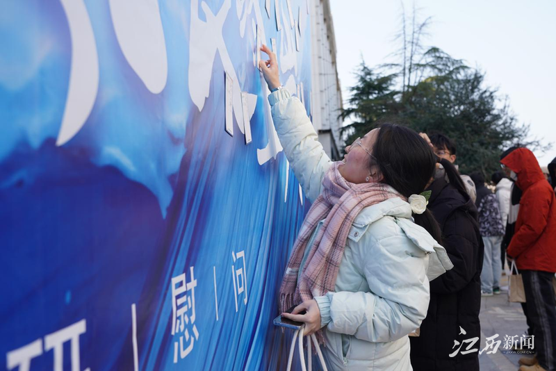 同学们还纷纷将心愿写在心愿卡上,或踮着脚尖,或一跃而起,努力将心愿卡贴到许愿墙的更高处,希冀愿望成真。