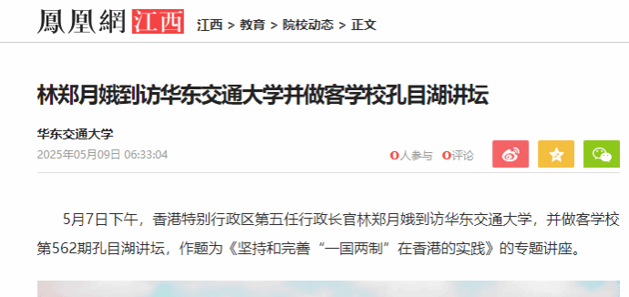 林郑月娥做客beat365正版唯一官网必一孔目湖讲坛。