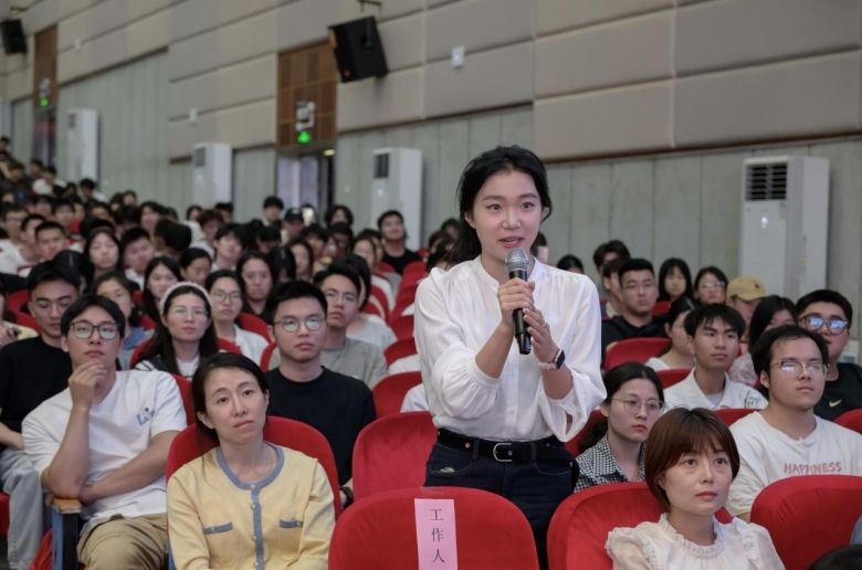 “作为新时代青年学子,我们如何在维护国家安全中尽青春之责?”“特区政府在选拔青年人才时比较看重哪些方面?”“连接首都与香港的京港高铁线的即将贯通,对香港未来发展的意义有哪些?”讲座现场座无虚席,师生们聚精会神地聆听报告,踊跃提问交流,现场气氛活跃,掌声不断。