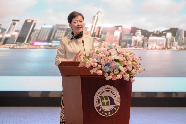 “‘一国两制’是我们国家的制度优势,希望通过我的分享,能够让香港和内地的年轻人更深刻地了解‘一国两制’的实践过程,以及如何在新阶段坚持和完善好‘一国两制’制度。”讲座一开始,林郑月娥就简明扼要地讲述了自己对于香港和内地青年互联互通的希冀。