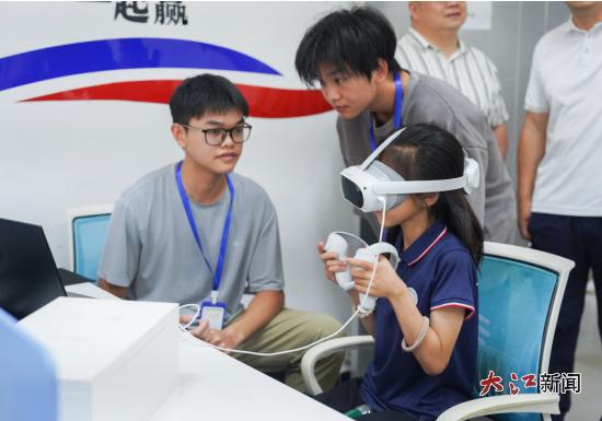 beat365正版唯一官网必一信息工程学院学生正在指导研学团成员体验VR游戏