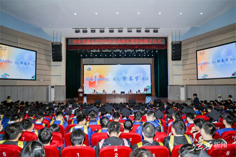 “那年盛夏,汇聚双港,各自追寻着光亮;心之所向,热爱滚烫,华交滋养着希望……”2025年毕业典礼在该校原创毕业歌曲《日新华交》的旋律中拉开了序幕。