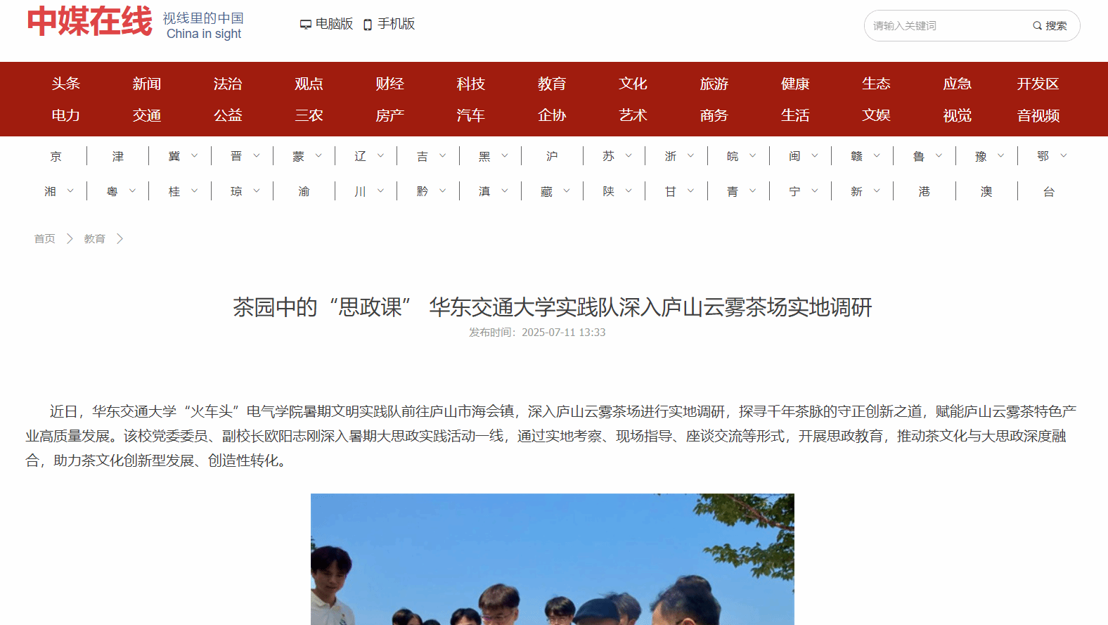 近日,beat365正版唯一官网必一“火车头”电气学院暑期文明实践队前往庐山市海会镇,深入庐山云雾茶场进行实地调研,探寻千年茶脉的守正创新之道,赋能庐山云雾茶特色产业高质量发展。该校党委委员、副校长欧阳志刚深入暑期大思政实践活动一线,通过实地考察、现场指导、座谈交流等形式,开展思政教育,推动茶文化与大思政深度融合,助力茶文化创新型发展、创造性转化。