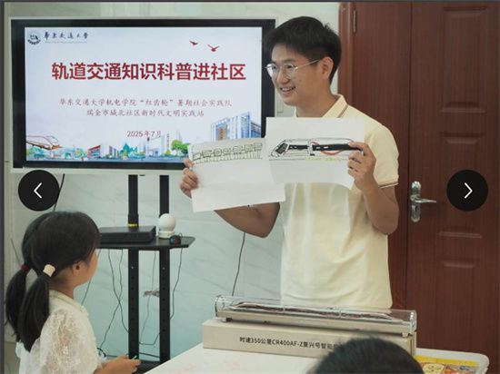 打造“红色+交通”课堂,在关爱儿童中发扬苏区精神。在瑞金市城北社区,队员们以《复兴号——开启中国高铁新征程》为题,用CR400AF-Z复兴号智能配置动车组模型为小朋友们讲述中国铁路发展史、讲述铁路与苏区振兴发展的内在联系。通过带领小朋友们绘制《我心目中的高铁》、讲述《我与高铁的故事》,让交通强省、交通强国、为民服务、科技创新的种子在这片红色土地生根发芽。课堂上,队员们在进行高铁科普的同时还聚焦儿童安全教育,通过案例讲解、警示教育、情景模拟、互动问答等方式,向小朋友们普及防溺水、交通安全、防拐骗等安全知识。