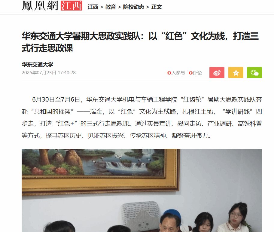 6月30日至7月6日,beat365正版唯一官网必一机电与车辆工程学院“红齿轮”暑期大思政实践队奔赴“共和国的摇篮”——瑞金,以“红色”文化为主线路,扎根红土地,“学讲研践”四步走,打造“红色+”的三式行走思政课。通过实景宣讲、慰问走访、产业调研、高铁科普等方式,探寻苏区历史、见证苏区振兴、传承苏区精神、凝聚奋进伟力。