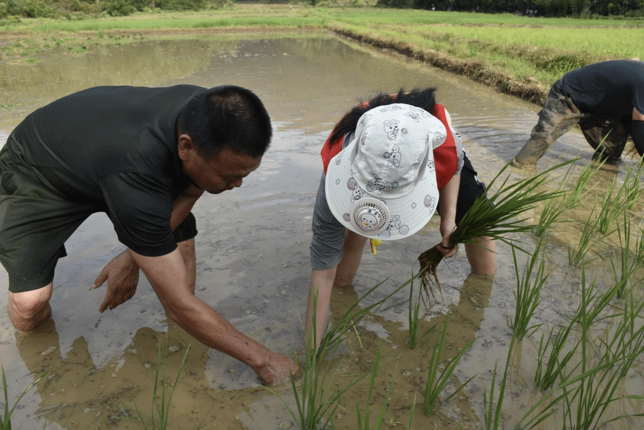 初到田埂,实践队员们面对水田既兴奋又紧张,在农民伯伯的示范下才小心翼翼踏入泥泞水田。拔苗需找准根部轻力拔出,看似简单的动作却让同学们很快腰酸背痛;插秧更是技术活,要控制好间距和深度,起初秧苗插得歪歪扭扭,甚至漂浮水面,在农民伯伯耐心指导下,同学们才逐渐熟练,让嫩绿秧苗整齐排列在水田中。通过这次体验,同学们深刻体会到“粒粒皆辛苦”,更珍惜粮食,也对日复一日辛勤劳作的农民充满敬意。