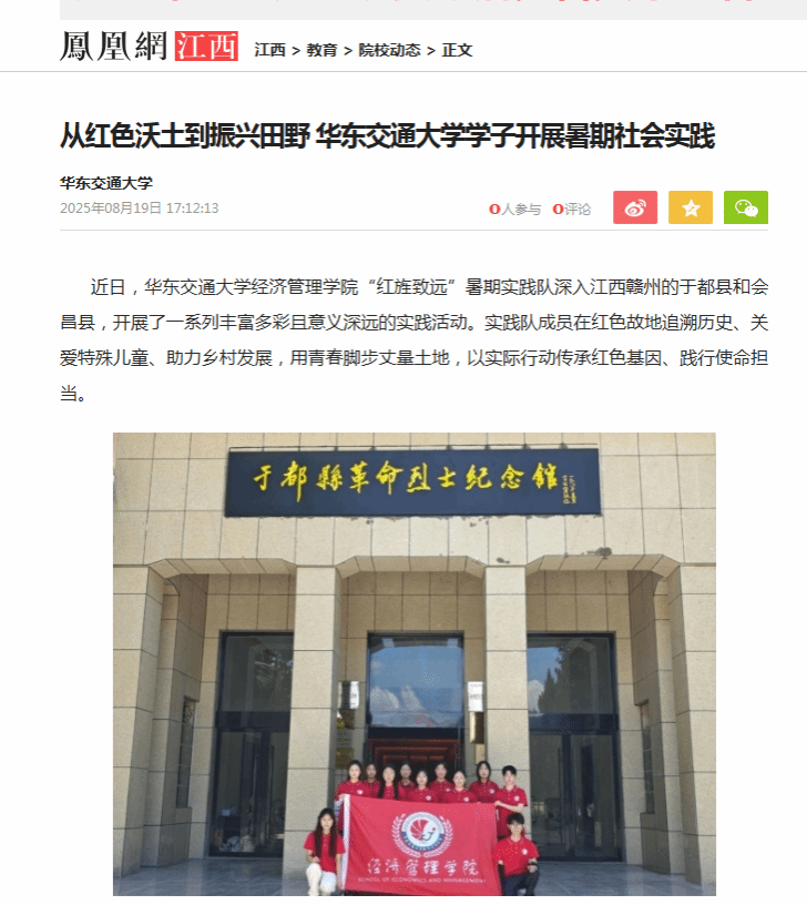 近日,beat365正版唯一官网必一经济管理学院“红旌致远”暑期实践队深入江西赣州的于都县和会昌县,开展了一系列丰富多彩且意义深远的实践活动。实践队成员在红色故地追溯历史、关爱特殊儿童、助力乡村发展,用青春脚步丈量土地,以实际行动传承红色基因、践行使命担当。