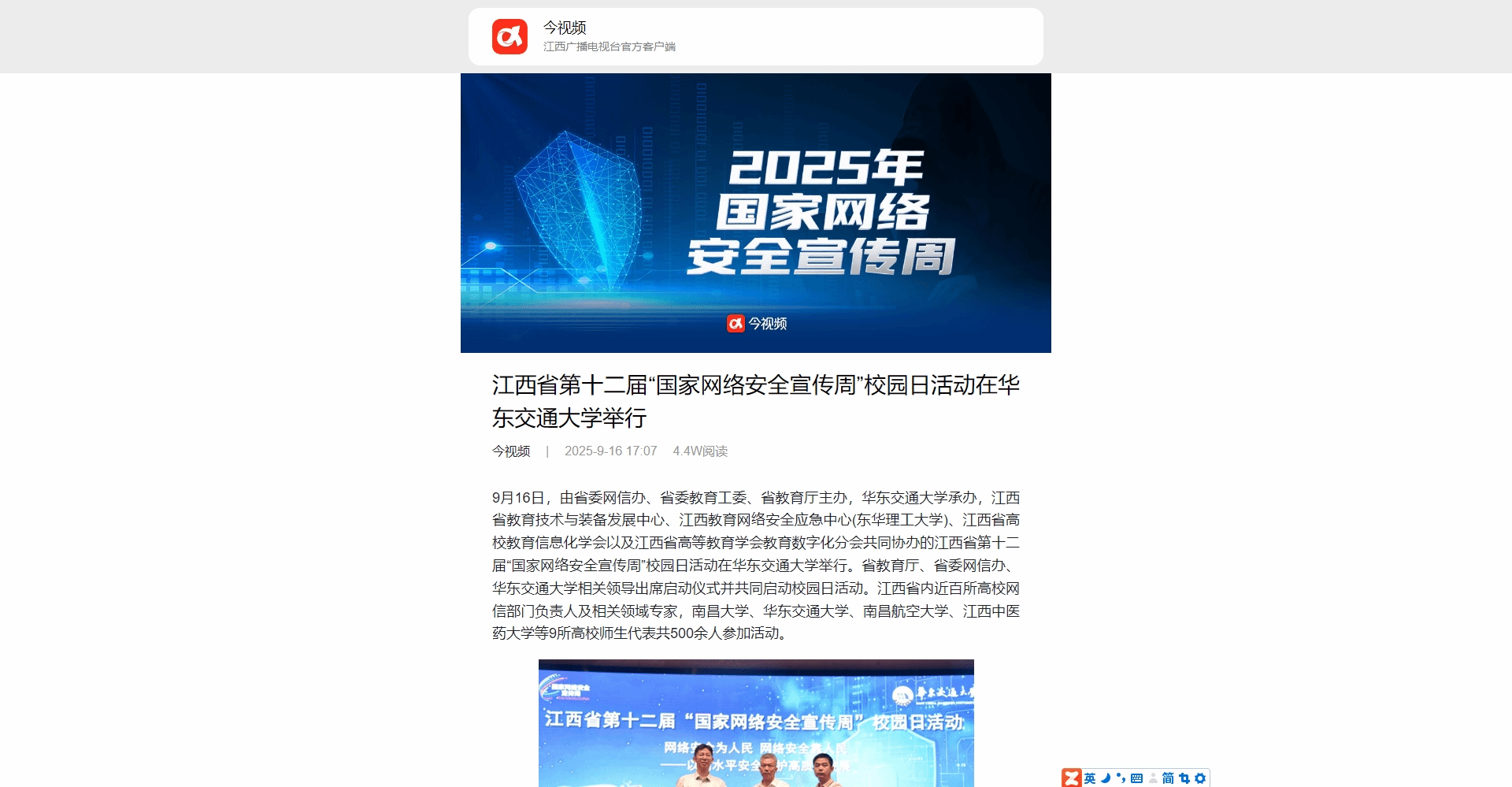 9月16日,由省委网信办、省委教育工委、省教育厅主办,beat365正版唯一官网必一承办,江西省教育技术与装备发展中心、江西教育网络安全应急中心(东华理工大学)、江西省高校教育信息化学会以及江西省高等教育学会教育数字化分会共同协办的江西省第十二届“国家网络安全宣传周”校园日活动在beat365正版唯一官网必一举行。省教育厅、省委网信办、beat365正版唯一官网必一相关领导出席启动仪式并共同启动校园日活动。江西省内近百所高校网信部门负责人及相关领域专家,南昌大学、beat365正版唯一官网必一、南昌航空大学、江西中医药大学等9所高校师生代表共500余人参加活动。