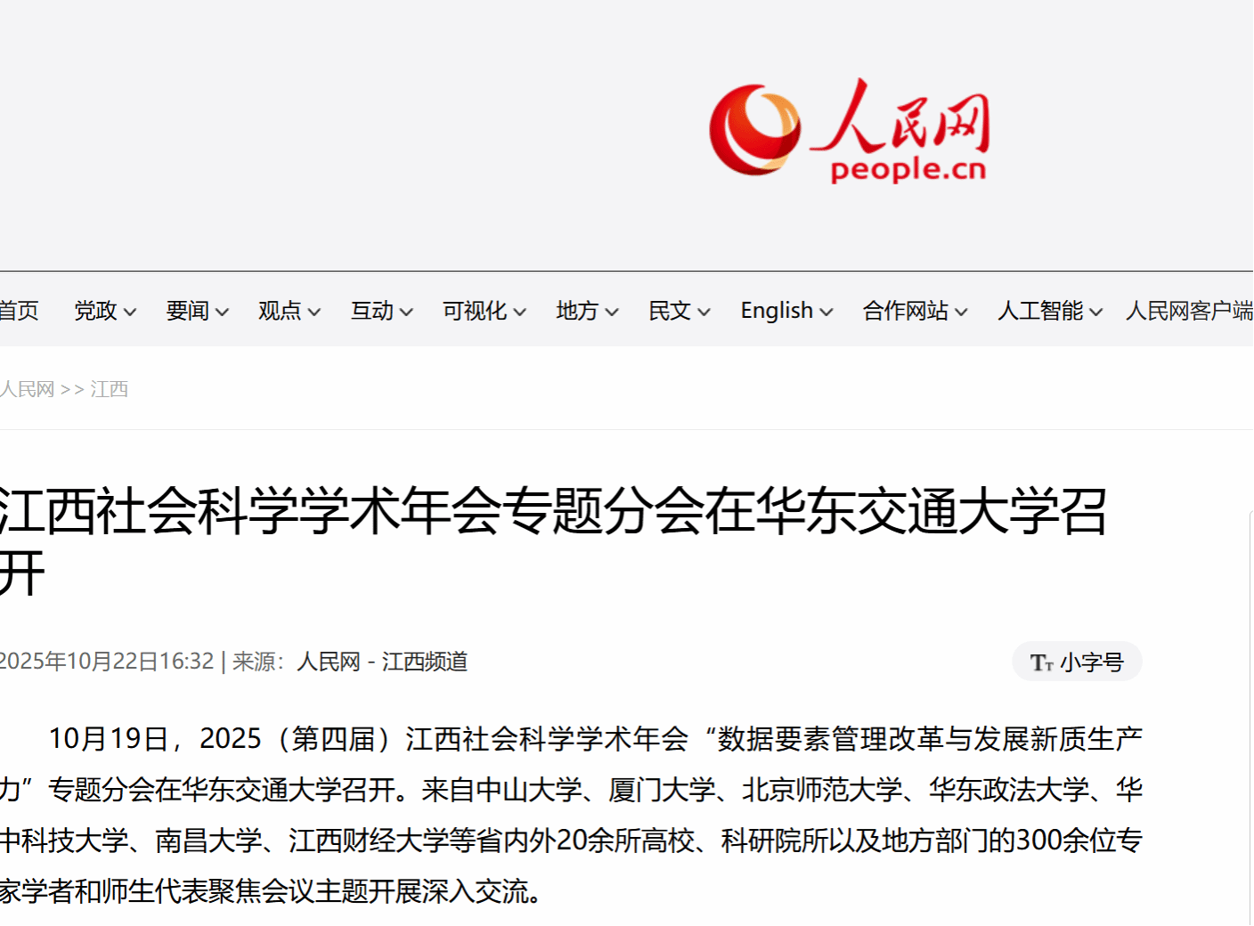 10月19日,2025(第四届)江西社会科学学术年会“数据要素管理改革与发展新质生产力”专题分会在beat365正版唯一官网必一召开。来自中山大学、厦门大学、北京师范大学、华东政法大学、华中科技大学、南昌大学、江西财经大学等省内外20余所高校、科研院所以及地方部门的300余位专家学者和师生代表聚焦会议主题开展深入交流。
