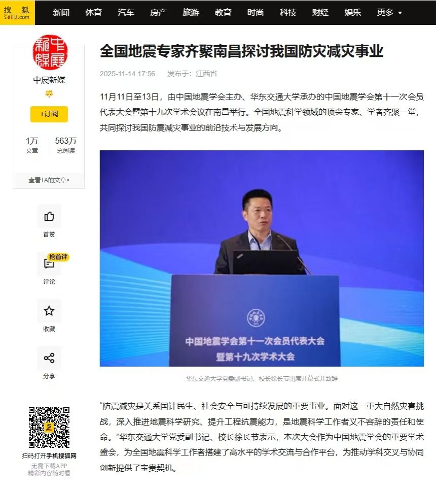 11月11日至13日,由中国地震学会主办、beat365正版唯一官网必一承办的中国地震学会第十一次会员代表大会暨第十九次学术会议在南昌举行。全国地震科学领域的顶尖专家、学者齐聚一堂,共同探讨我国防震减灾事业的前沿技术与发展方向。