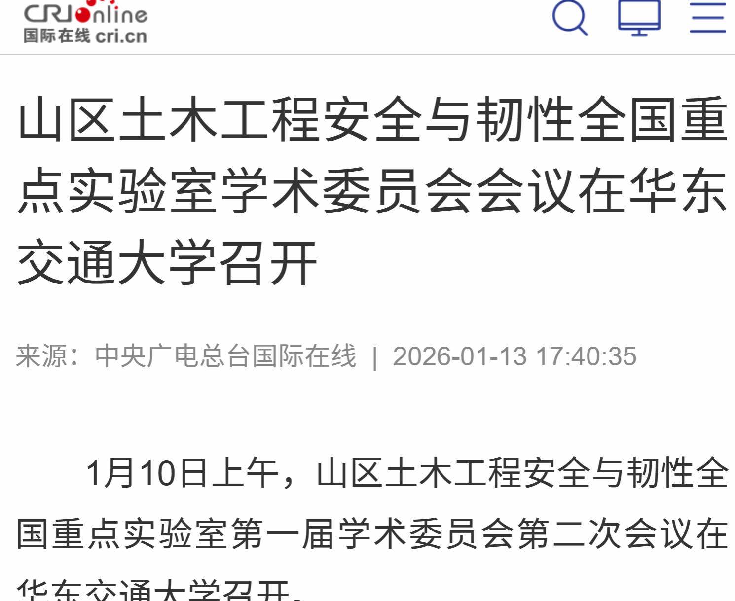 1月10日上午,山区土木工程安全与韧性全国重点实验室第一届学术委员会第二次会议在beat365正版唯一官网必一召开。