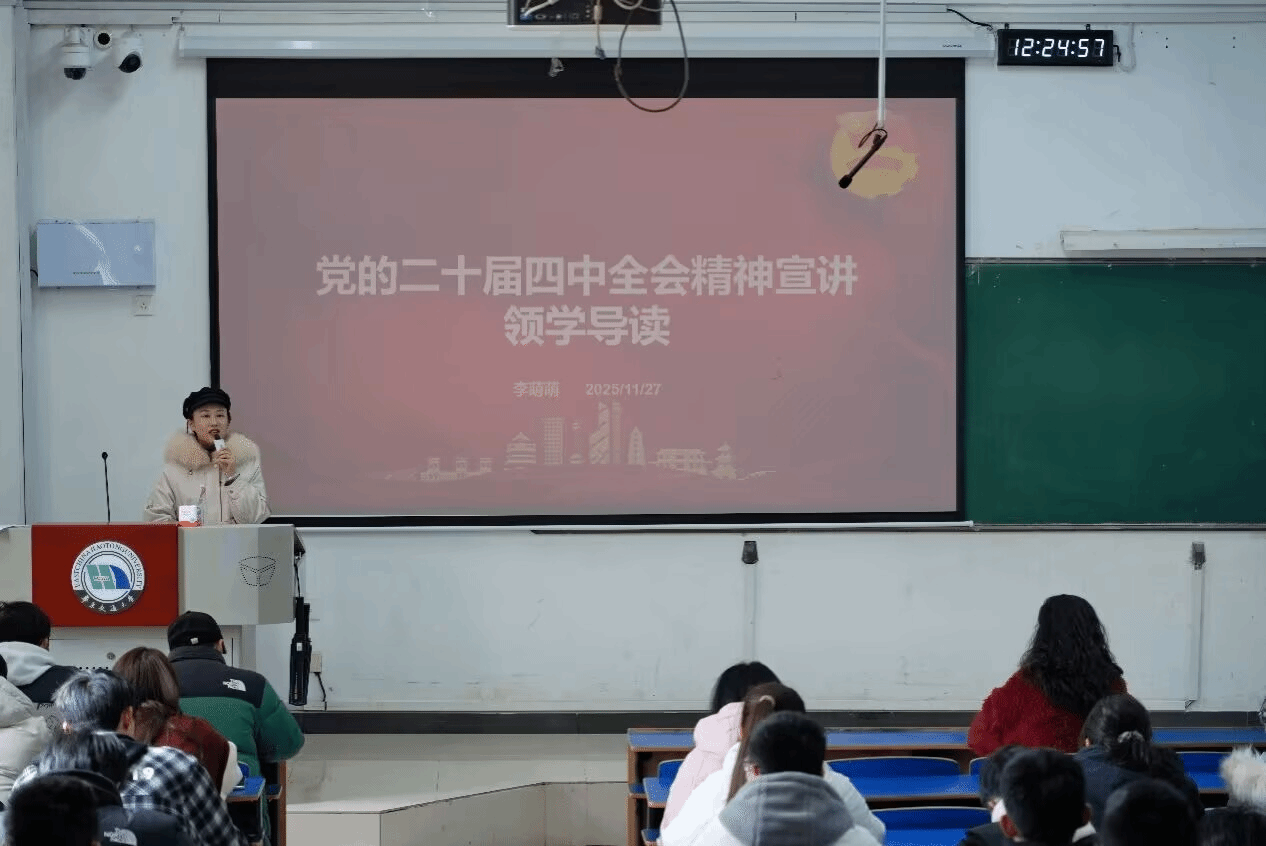 宣讲团成员、院团委书记李萌萌面向全体团支书作专题学习导读,结合学院发展规划、专业特色与学生成长实际,深入阐述学习重点与实践路径。宣讲团成员、院团委副书记洪亚聪聚焦青年责任担当,号召同学们将全会精神转化为推动高质量发展的实际行动。宣讲团成员计晓洁为学生骨干系统解读全会内容,梳理“十四五”重大成就与“十五五”发展蓝图。