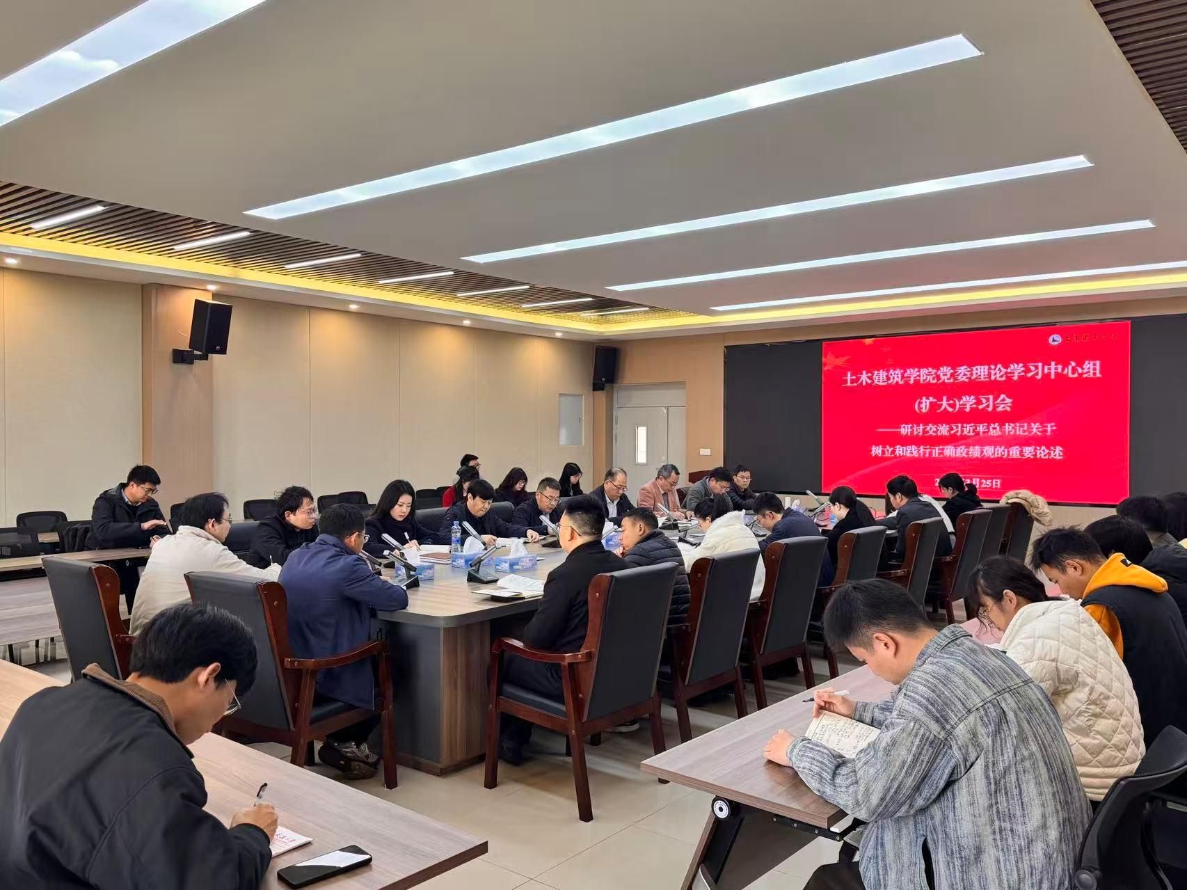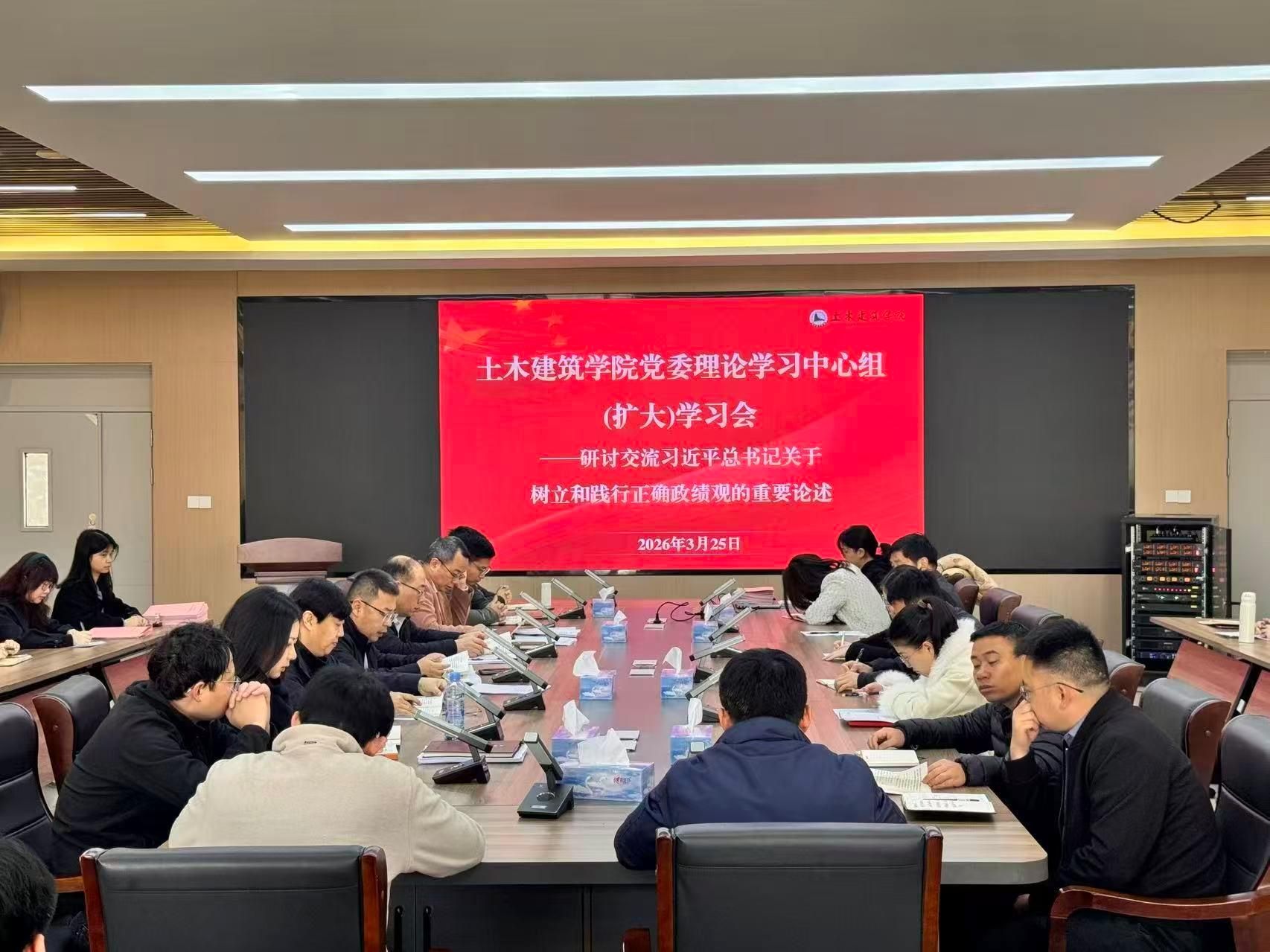 3月25日,土建学院党委召开理论学习中心组(扩大)学习会,集中学习习近平总书记关于树立和践行正确政绩观的重要论述,聚焦主题进行交流研讨。